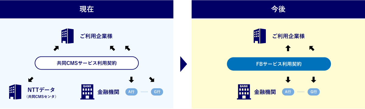 サービス終了後は、企業様と各金融機関との個別契約へ移行をお願いいたします。